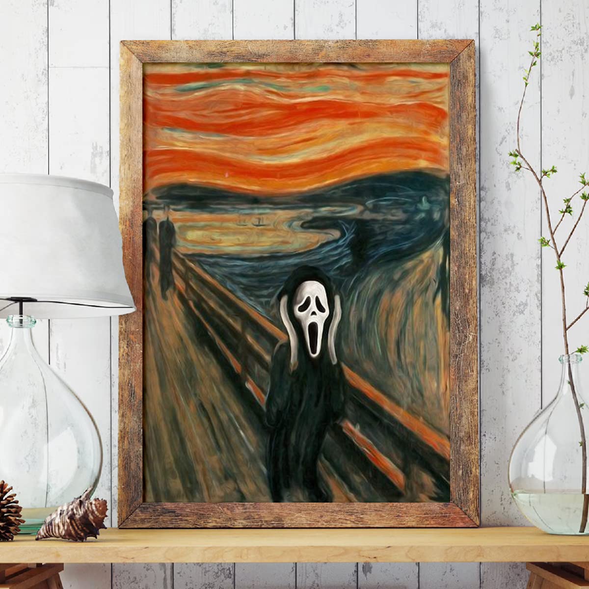 Amazon Com Funny The Scream Poster Scary Ghostface Parody Painting Horror Movie Scream 2022 Poster Canvas Wall Art Print Home Dorm Room Halloween Decor Gift For Movie Fans Family Or Friends 24 X